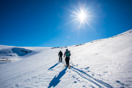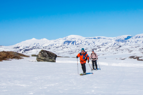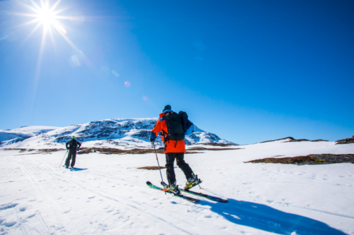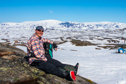 Reissu oli toukokuun puolivälissä, joka oli viimeisiä hetkiä käydä Riksun lähirinteillä skinnailemassa. Kebnekaisen kupeesta laskettavaa löytyy vielä kesäkuussakin. Alueen skinnailukarttoihin on merkitty reittisuosituksia, joista voi valita itselle sopivan reitin. Suomalaisittain korkeuseroa kertyy ihan mukavasti ja keski-ikäisten puuskutuksen täyttämä skinnailupäivä piti sisällään useamman pidemmän tauon. Laskiessa lumi vaihteli firnin ja ohuen ärsyttävän korpun välillä. Vaihteleva lumi ei kuitenkaan aurinkoista tunnelmaa laskenut.